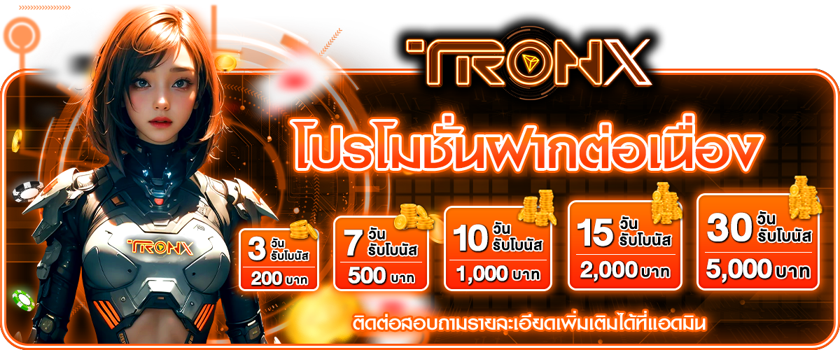 Tronx ผู้ให้บริการคาสิโนออนไลน์มีการพัฒนาและแก้ไขระบบอย่างดีที่สุดด้วยทีมงานผู้เชี่ยวชาญ ที่คอยช่วยเหลือนักพนันตลอดการเดิมพันเมื่อท่านเกิดปัญหาใดๆ อีกทั้งเราคือผู้ให้บริการพนันออนไลน์ ที่มีรูปแบบของเกมให้ท่านได้เลือกรับความบันเทิงอย่างหลากหลาย และนอกจากนี้ท่านก็จะได้พบกับโปรโมชั่นสุดคุ้มแบบจัดเต็ม มอบค่าตอบแทนจากการลงทุน ในแบบที่ท่านไม่เคยได้จากที่ไหนมาก่อน